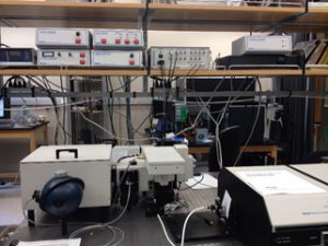 The PTI system consist of the QuantaMaster™ steady state spectrofluorometer, LaserStrobe™ for lifetime and time-resolved spectra collection and Integrating Sphere designed for enhanced measurement of quantum yields of solids, films, and powders.