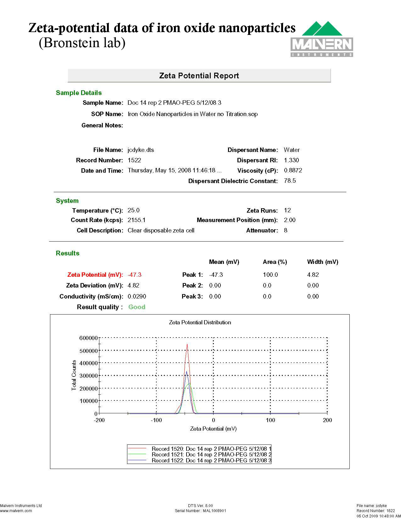 Zetasizer nano uses a laser with λ=633 nm. Samples that absorb in this region are not suitable for analysis. The instrument has a temperature controller capable at examining samples from 2oC to 90oC. Contact the supervisor prior to performing experiments at high or low temperatures.